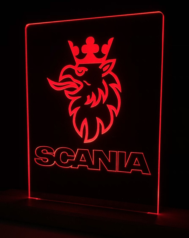 Lézergravírozott, élvilágított plexi tábla fa, asztali foglalattal, 12V-os tápegységgel;